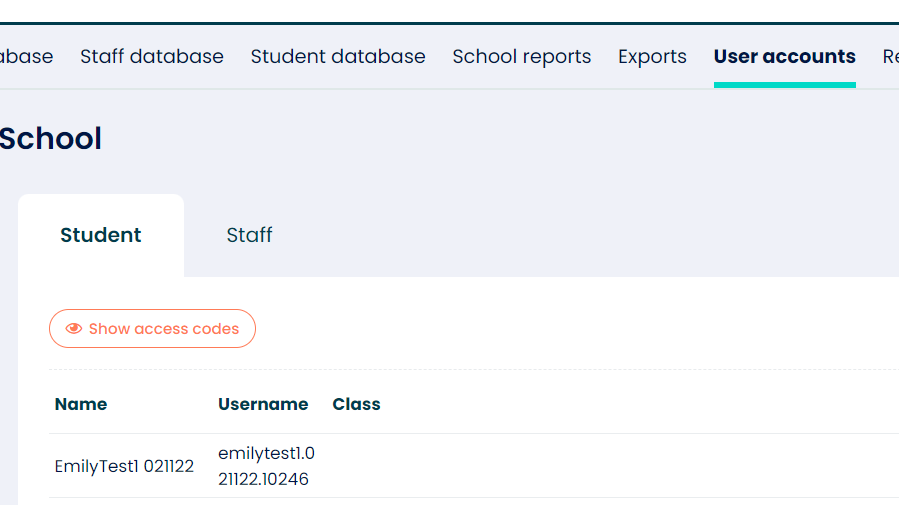 - Once loaded, click on the 'show access codes' button.