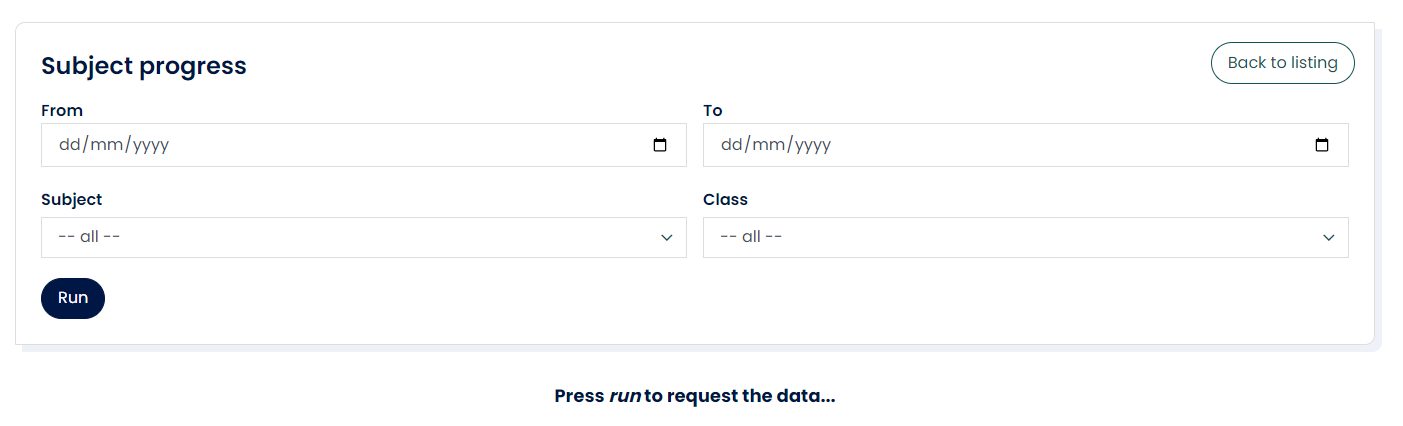 - Select the 'Subject progress' icon and enter the filter options.