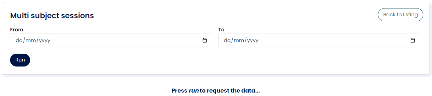 - Select the 'Multi subject sessions' icon and enter the period options.